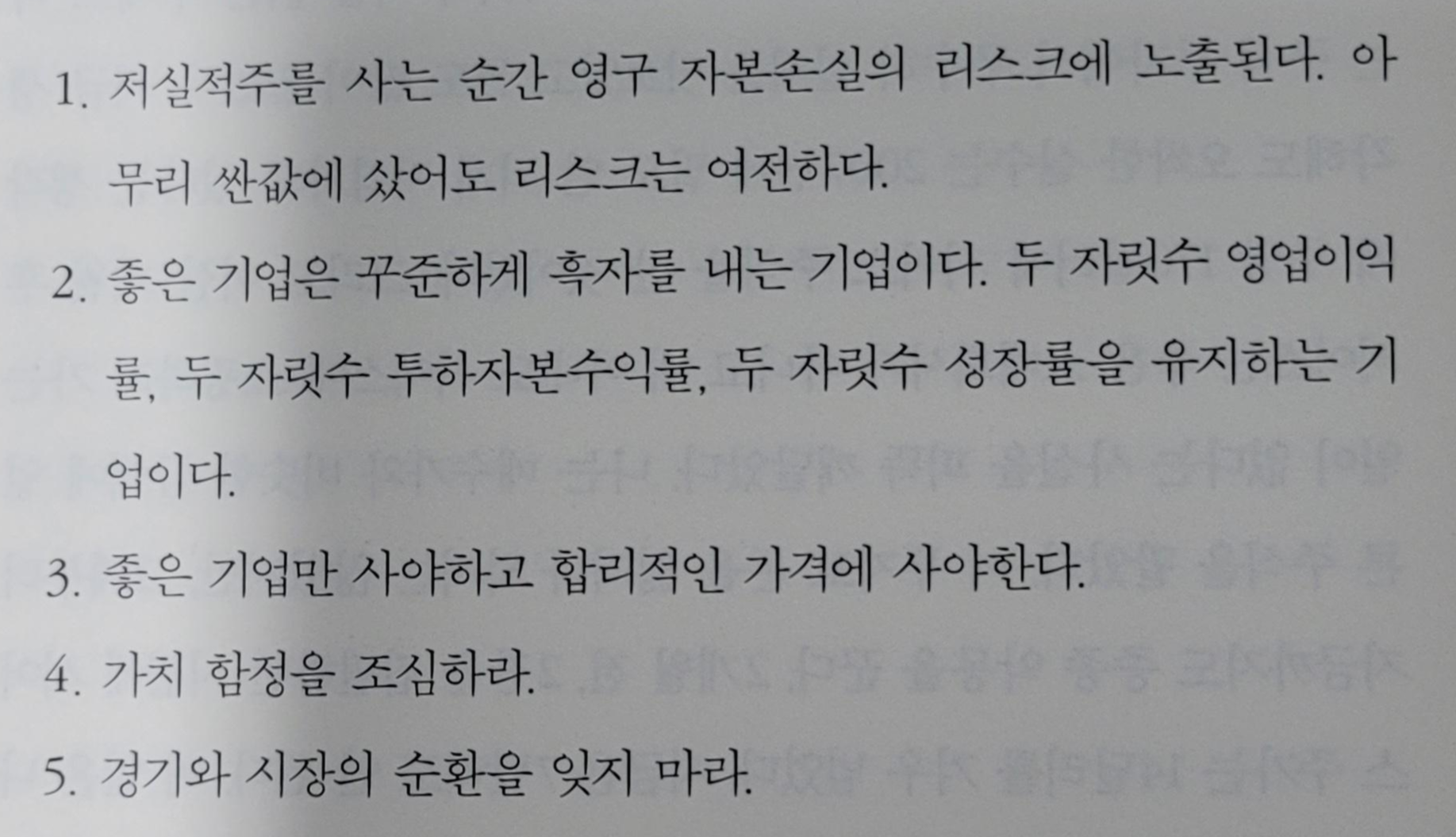 이 책을 읽으면서 놀란 사실 하나는 워런 버핏이 약 5년 정도 갖고 있다가 수익이 나서 판 주식도 있다는 것이다..