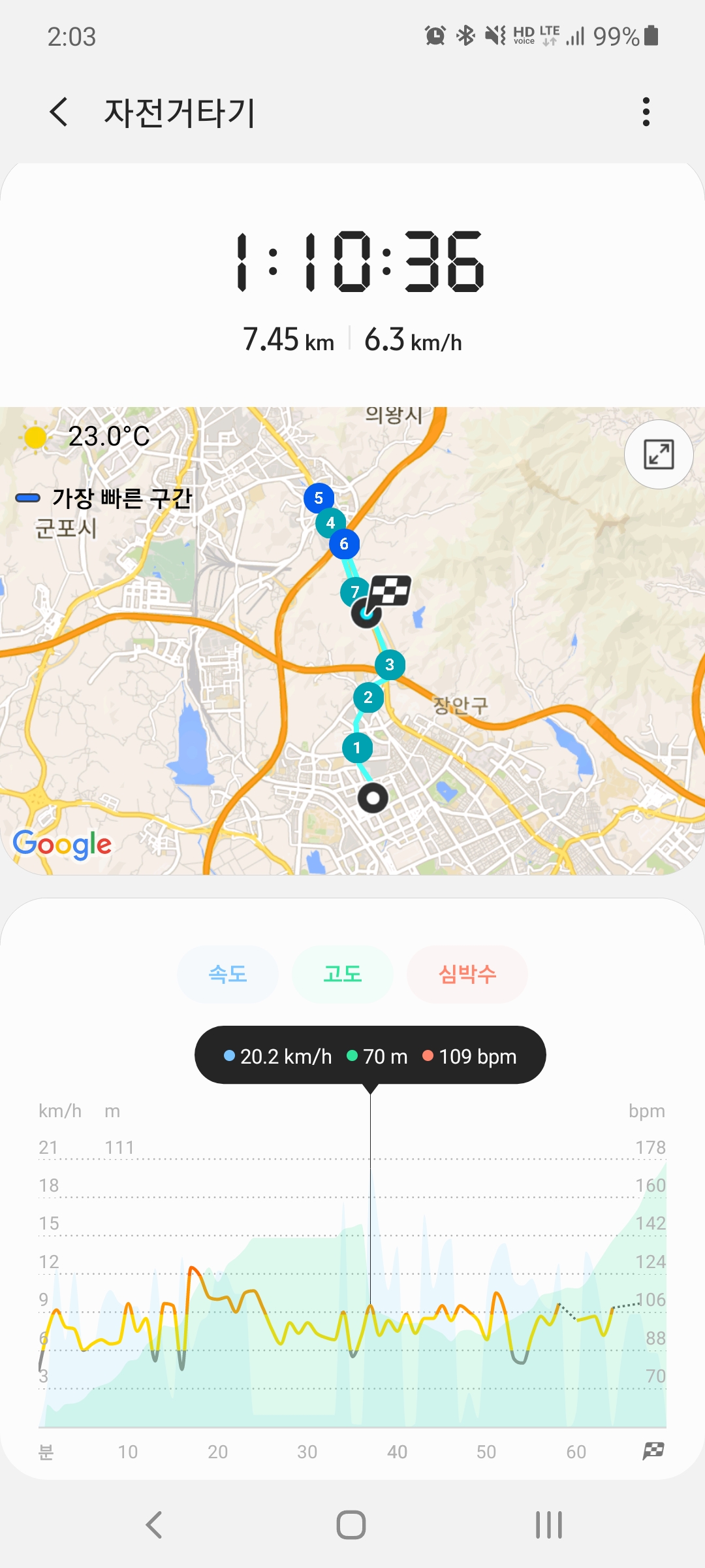 꽤 먼거린데..체크를 잘 못 해서..거리가 맞지 않게 나왔다..