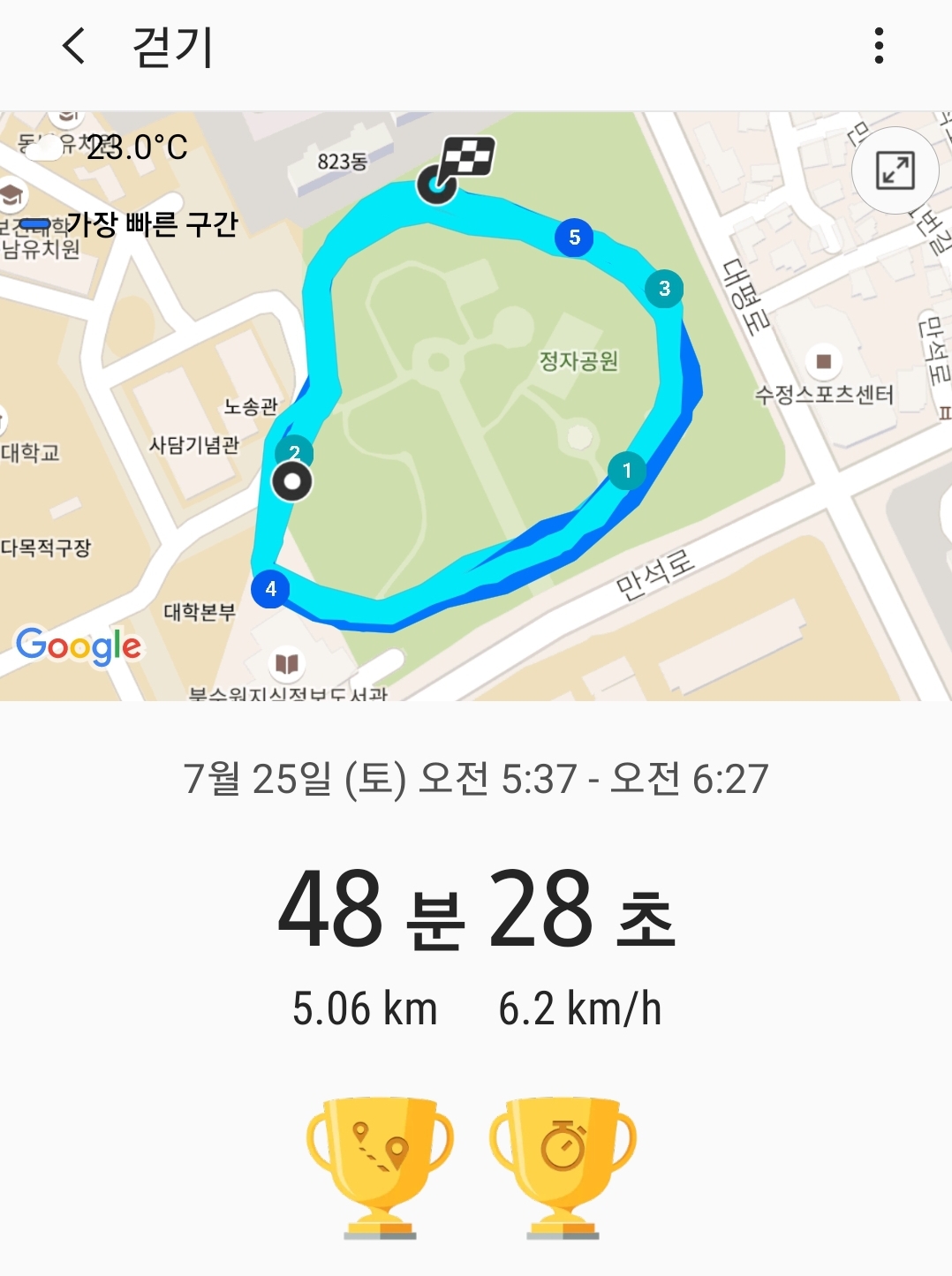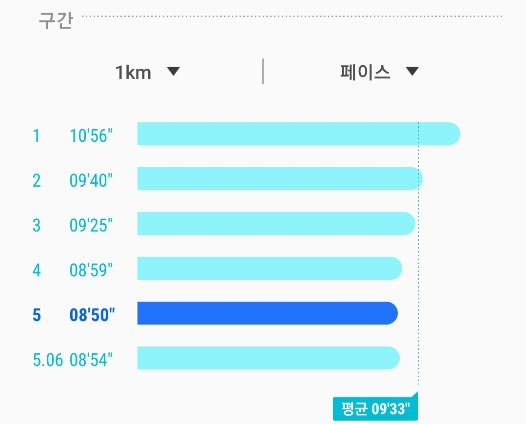 1. 5키로 이상 빠른 걸음으로 진행