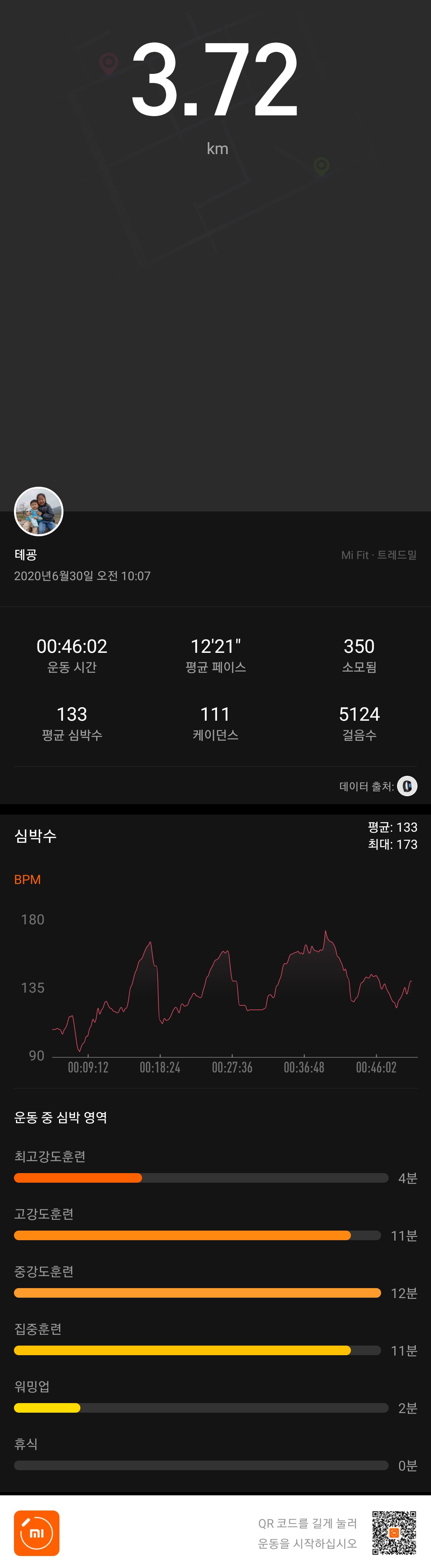 4. 뛰는 마지막 운동은 1.2키로로 뜀..