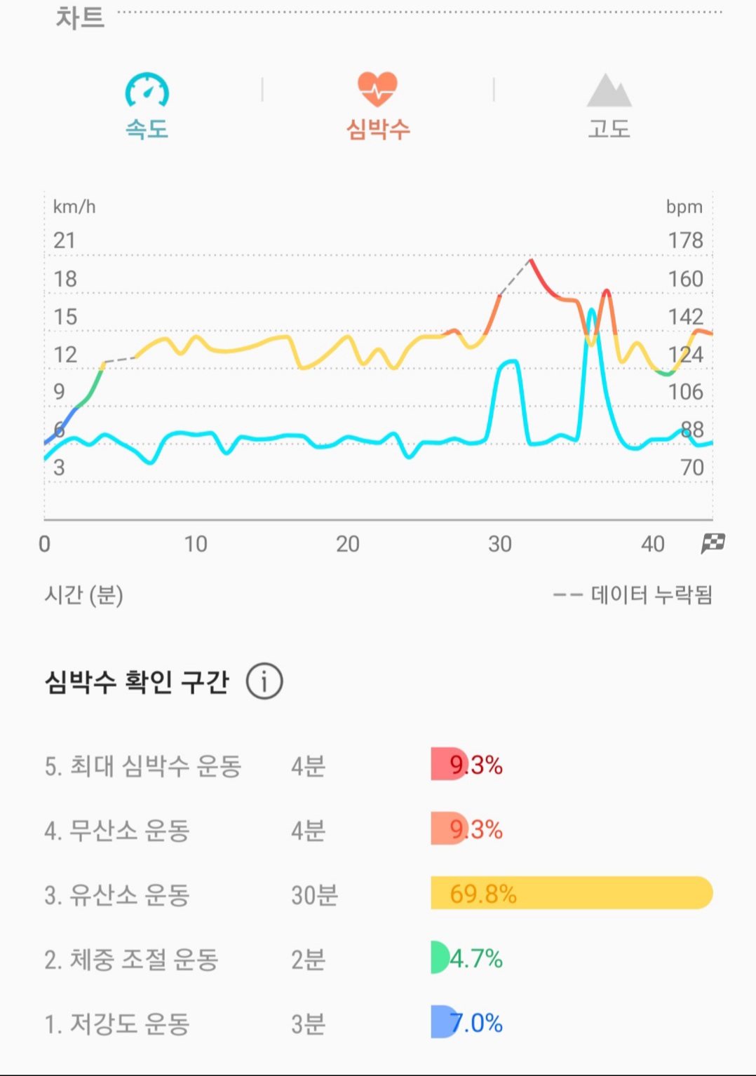 2. 중간에 달리기도 하였으나..대부분 빠르게 걷기로 운동