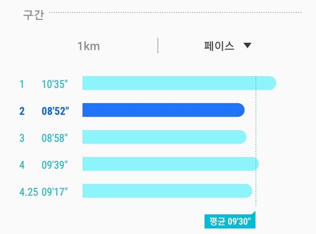 - 평균 페이스 : 1키로당 몇분(?) 나는 금일 9.3키로였다..
