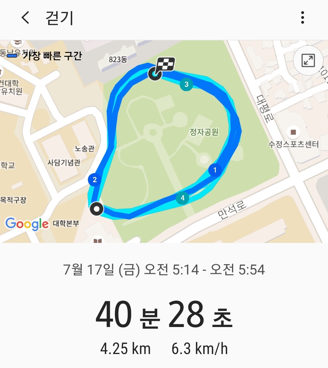 1. 총 7바퀴..4.2키로 빠른 걸음..