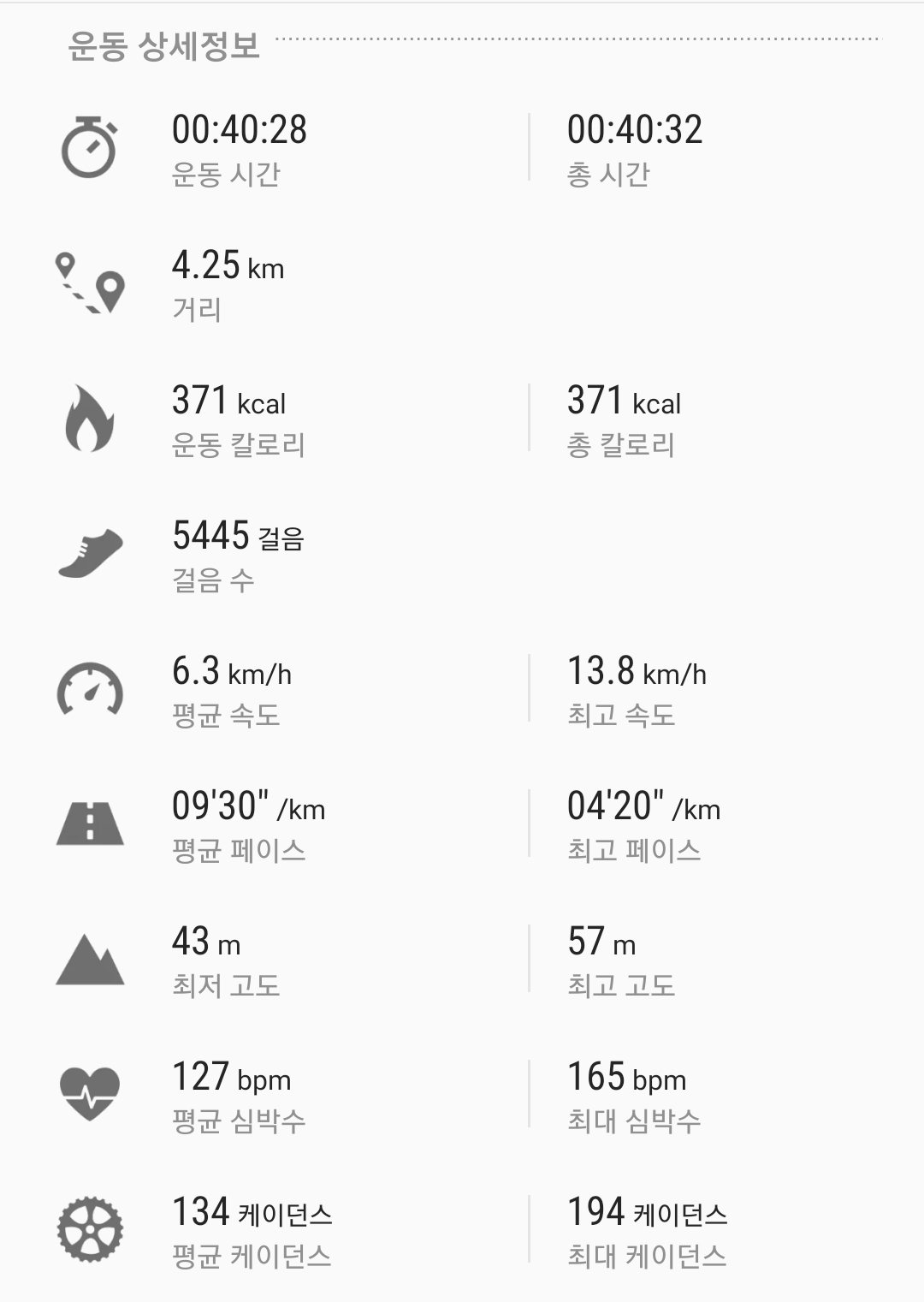 - 평균 페이스 : 1키로당 몇분(?) 나는 금일 9.3키로였다..
