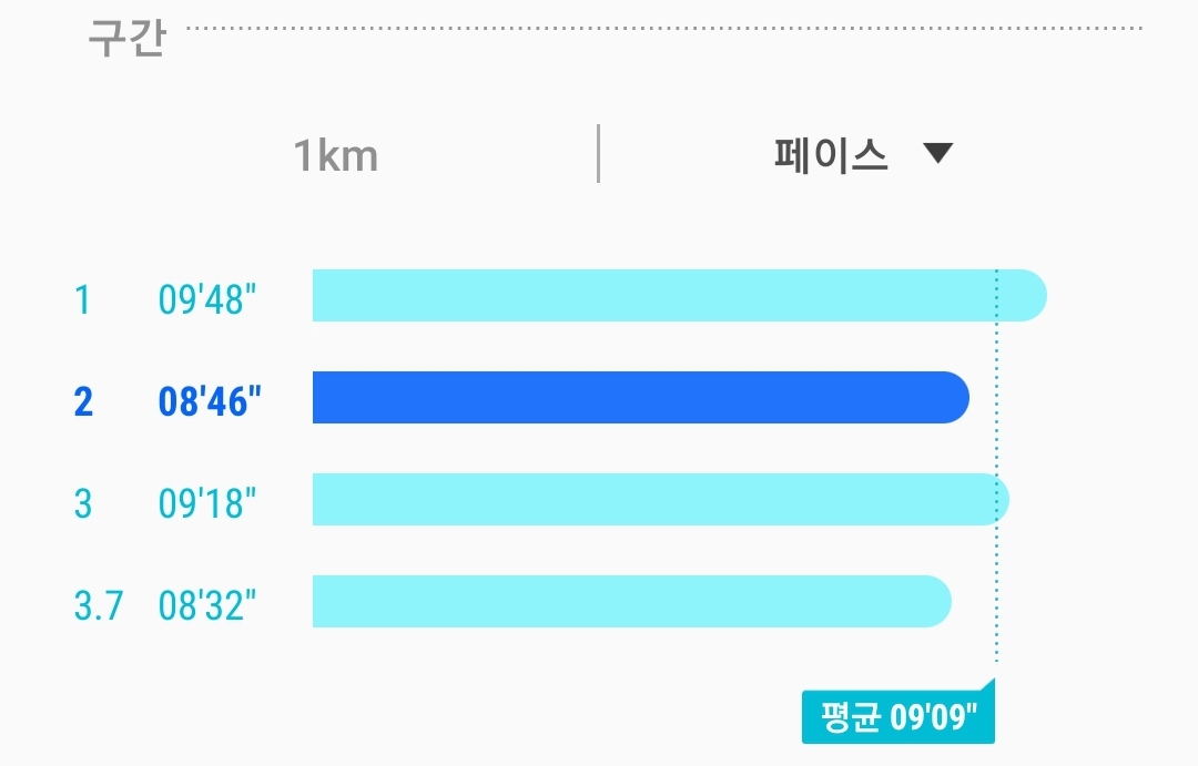 2. 1키로당 10분 정도였는데..오늘은 1키로당 9분 초반대..