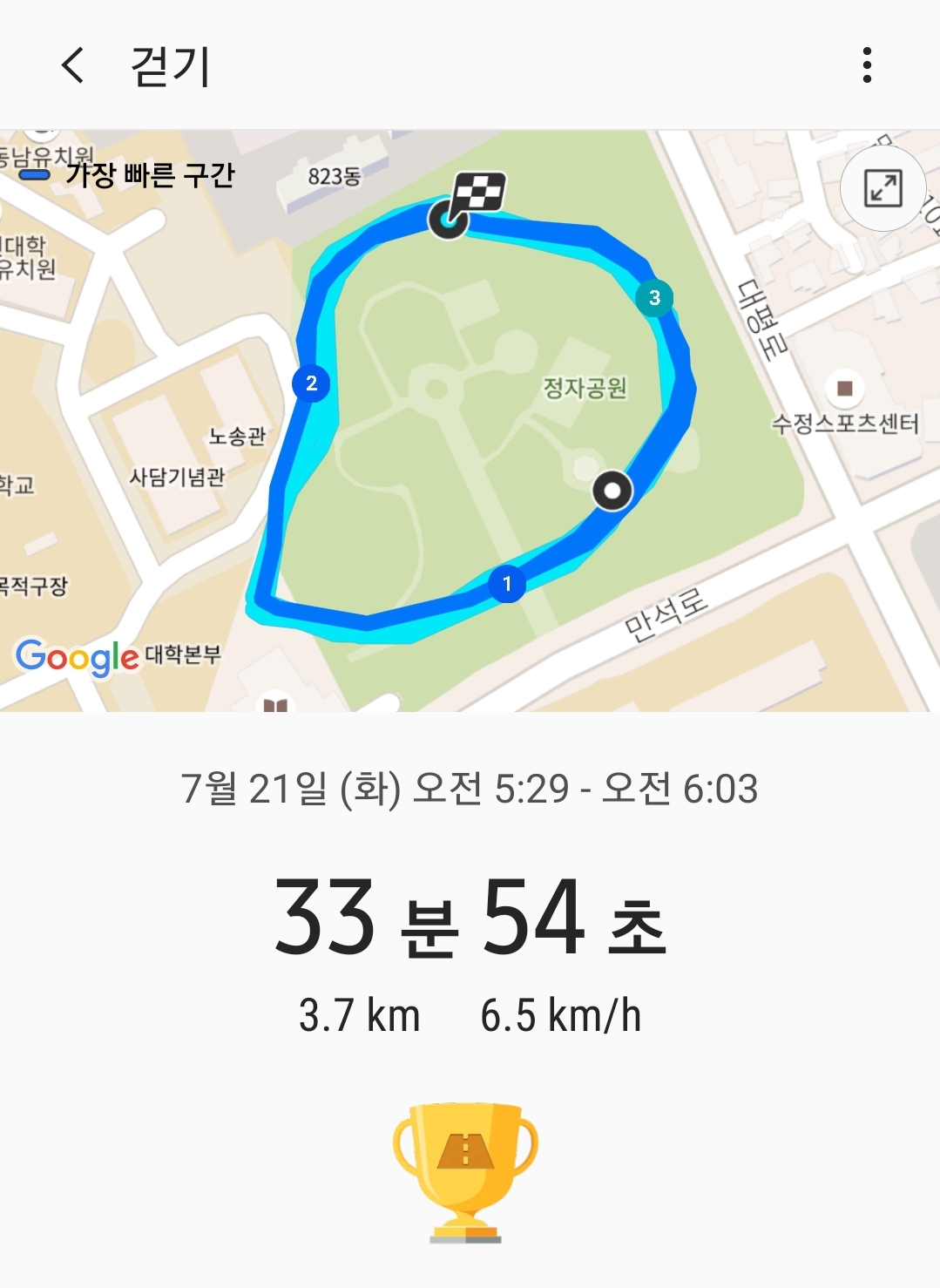 3. 빠른 걸음도 땀이 많이 나는 것 같다..